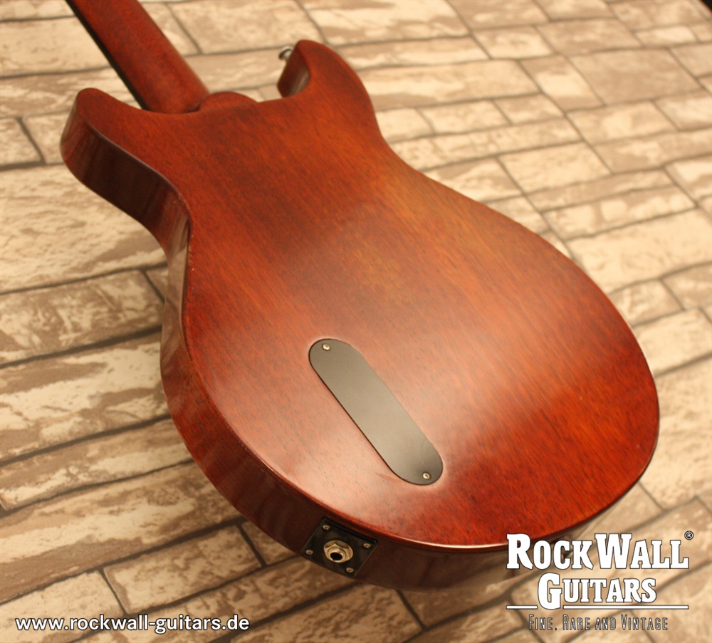 Der massive Mahagonikorpus ohne Kammern und der einteilige Mahagonihals sorgen für eine ausgezeichnete Resonanz und einen satten Ton. Das Ebenholzgriffbrett mit 22 Jescar Bünden, Pearl Dot Inlays und einem 12 Zoll Radius sorgt für hervorragende Bespielbarkeit und Komfort. Der Knochensattel mit einer Breite von 1.68 Zoll garantiert zudem eine präzise Intonation und ein exzellentes Spielgefühl.