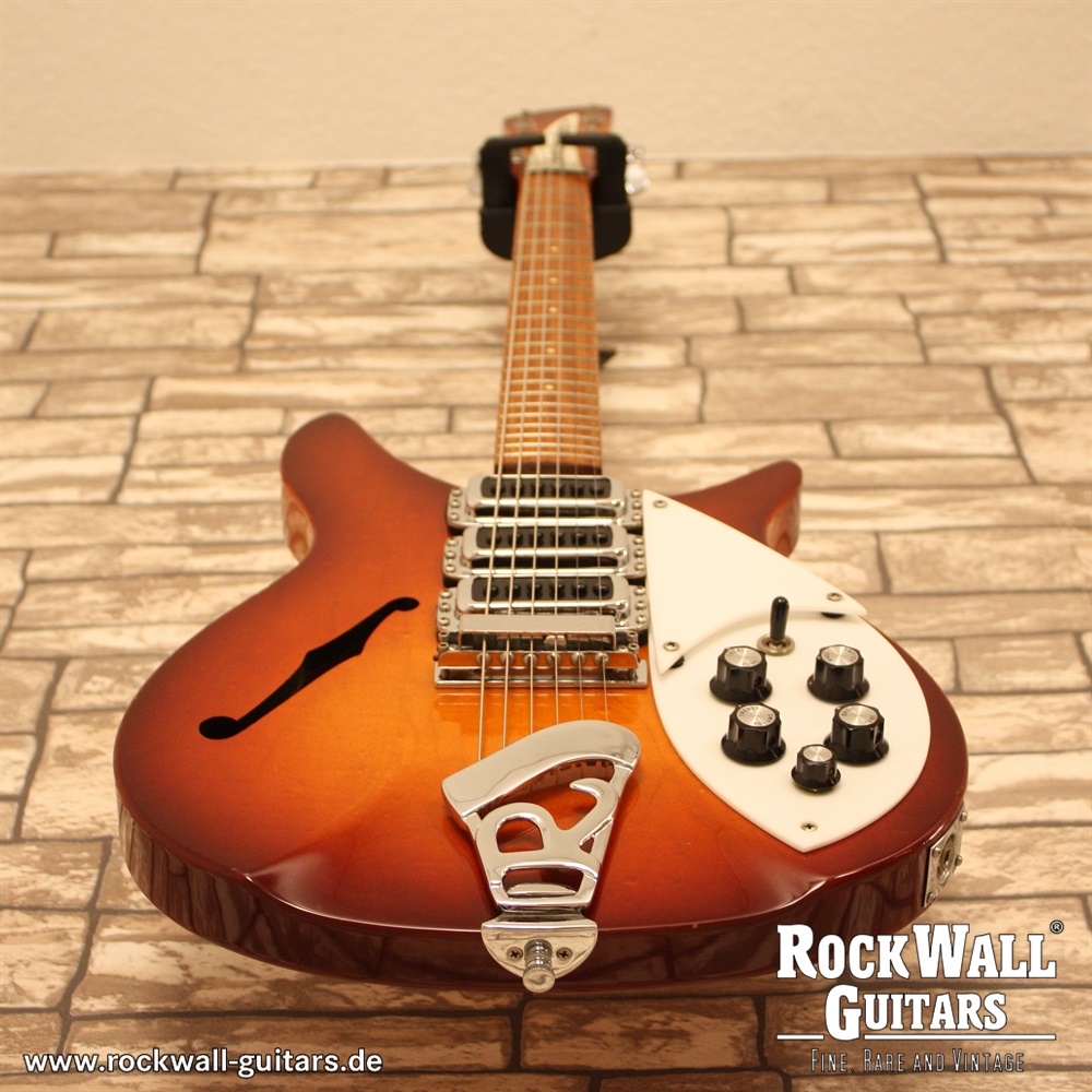 “Rickenbacker 320s Rose Morris Fireglo 1983,” including original case and certificate.