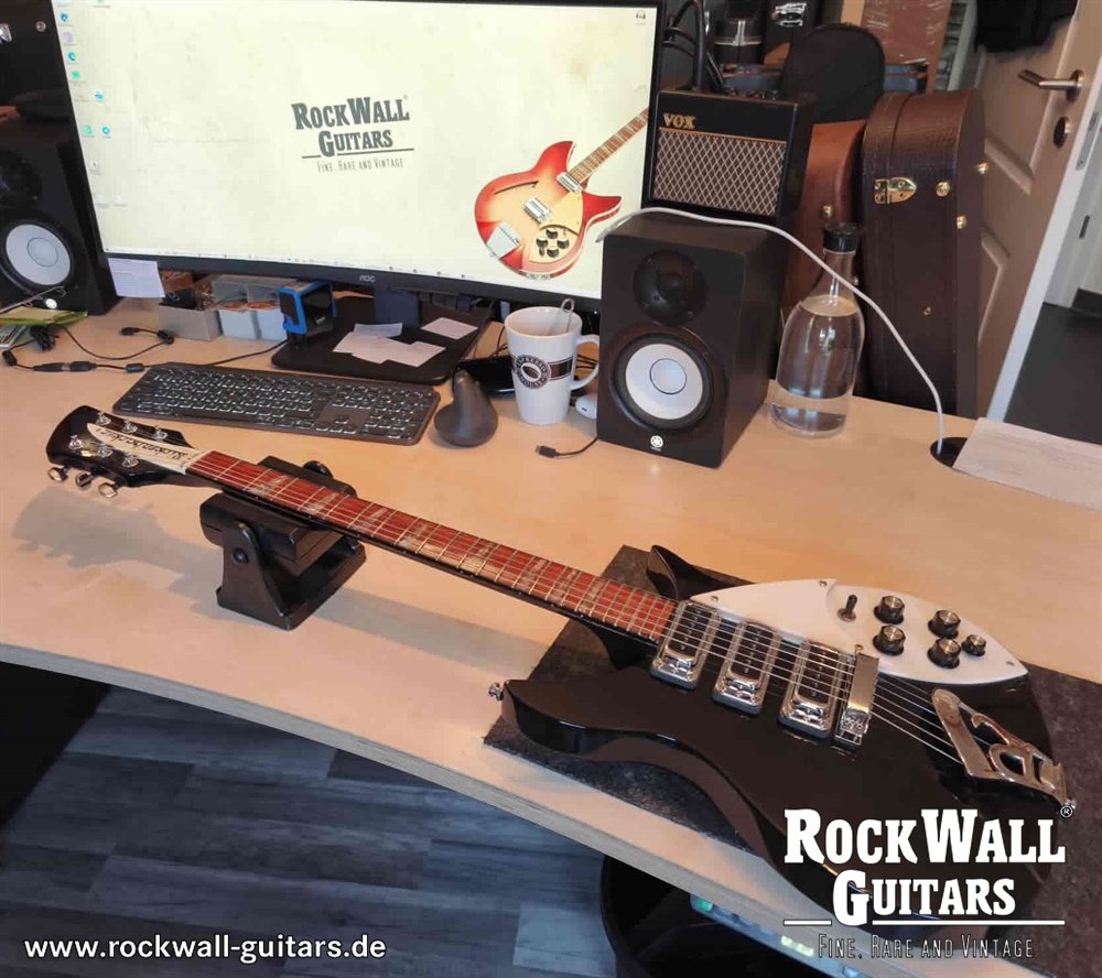 Rickenbacker 350 in der Farbe Jetglo mit Triangle Inlays und schwarzem Halsbinding.